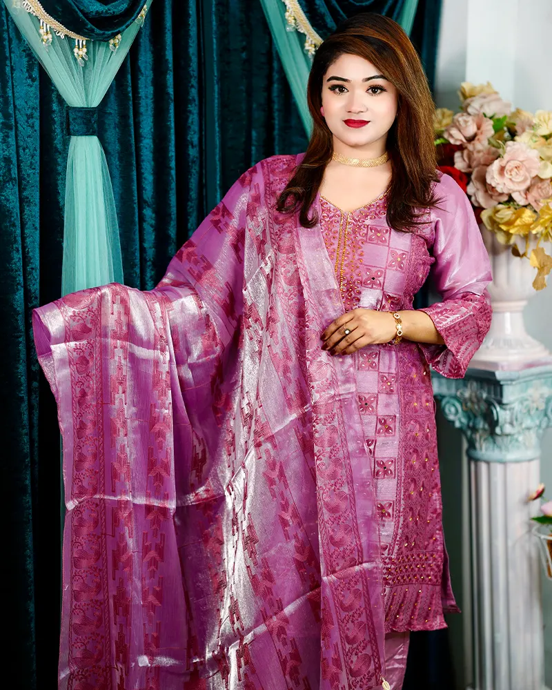 এই পোশাকটি যেকোনো উৎসব, বিয়ে বা ফর্মাল গেটটুগেদারের জন্য একদম উপযুক্ত!